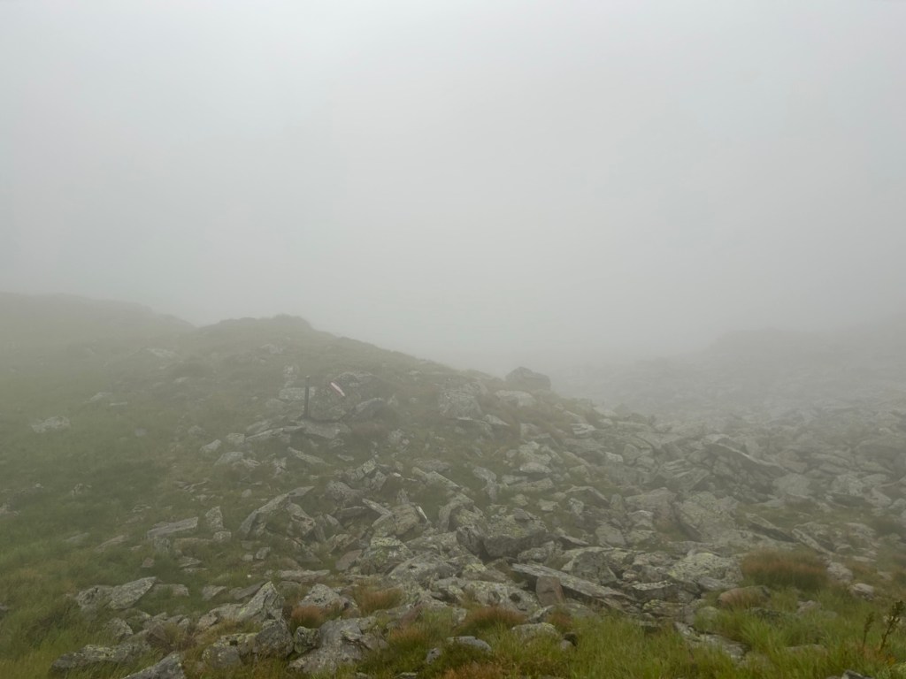 Die Wolkendecke ist jetzt geschlossen und nachdem ich noch ein Stück über die Ebene gewandert bin, geht es an den zweiten und steilsten Teil des Anstiegs.